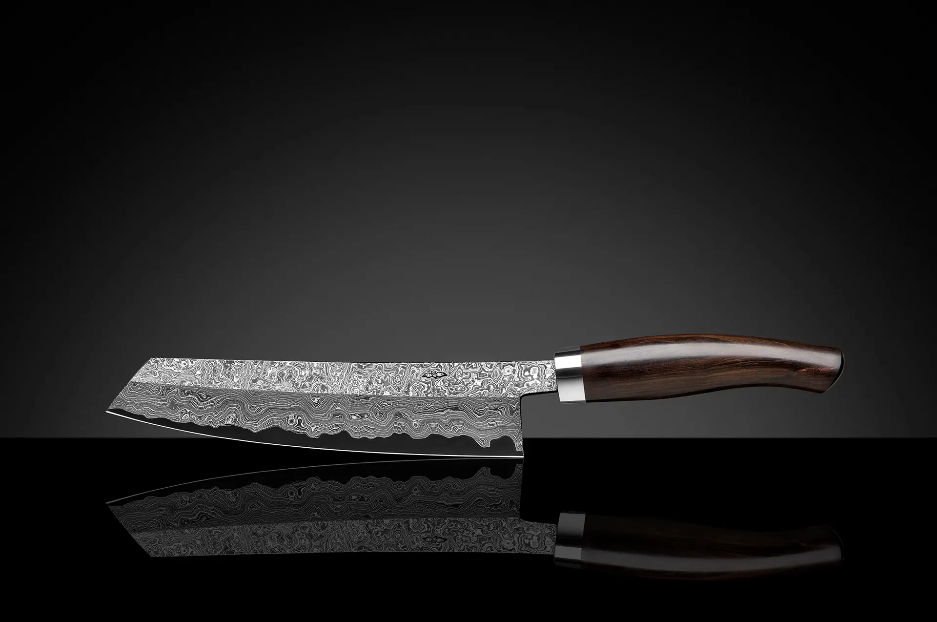 Die Kollektion EXKLUSIV repräsentiert die Spitze der Schmiedekunst und bietet Messer aus feinsten Damaszenerstählen, die in unserer eigenen Schmiede gefertigt werden. Alle Klingen unserer Damastmesser sind mit einer innovativen und patentierten NPC-Beschichtung versehen, die sie effektiv vor Korrosion schützt und ihre Langlebigkeit weiter erhöht.